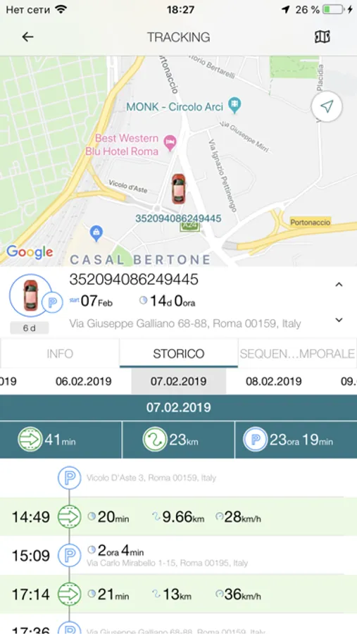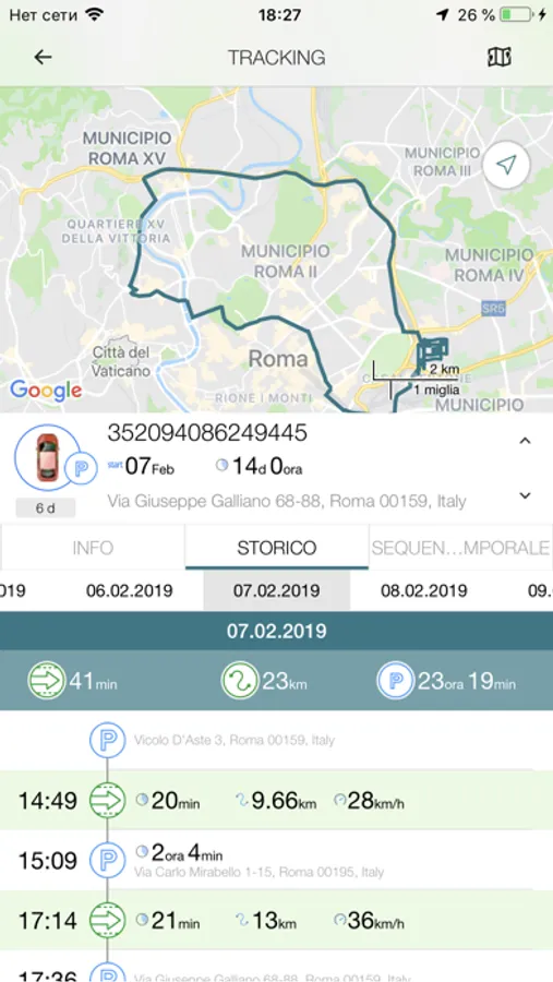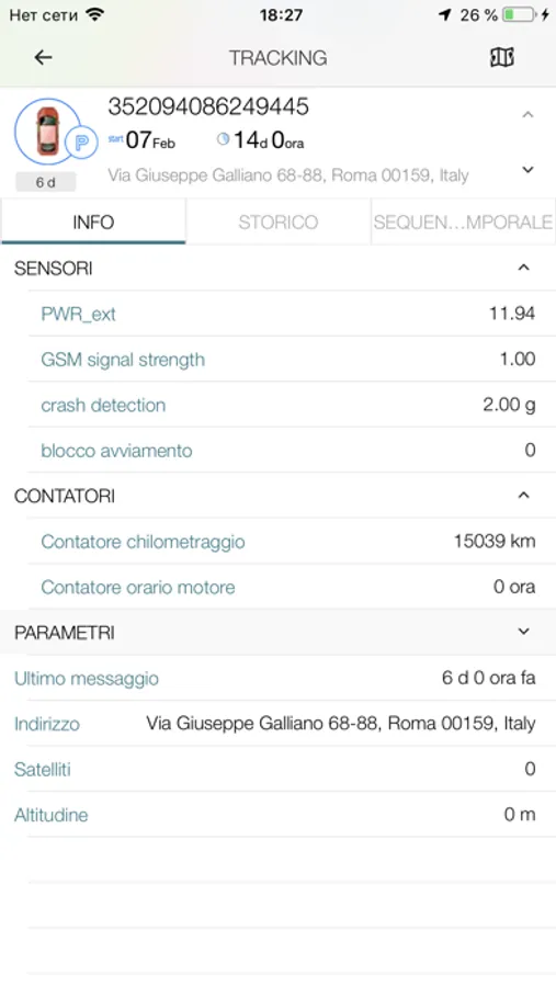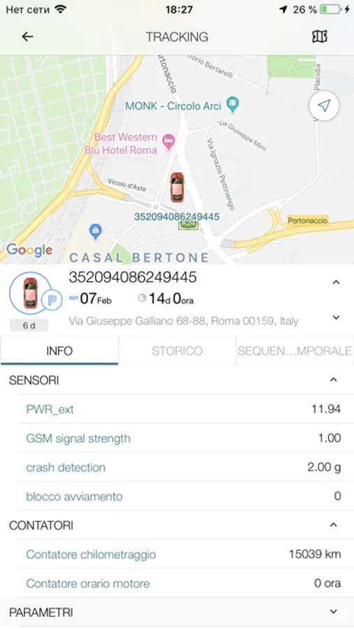 - Modalità di tracking. Ricevi la posizione precisa e gli altri parametri comunicati dal veicolo.