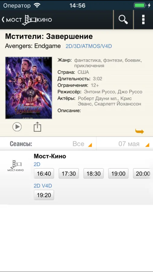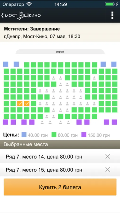 Most Kino – мобильное приложение, позволяющее купить билеты в кино с вашего телефона быстро и просто, лучшие места без очередей и суеты!