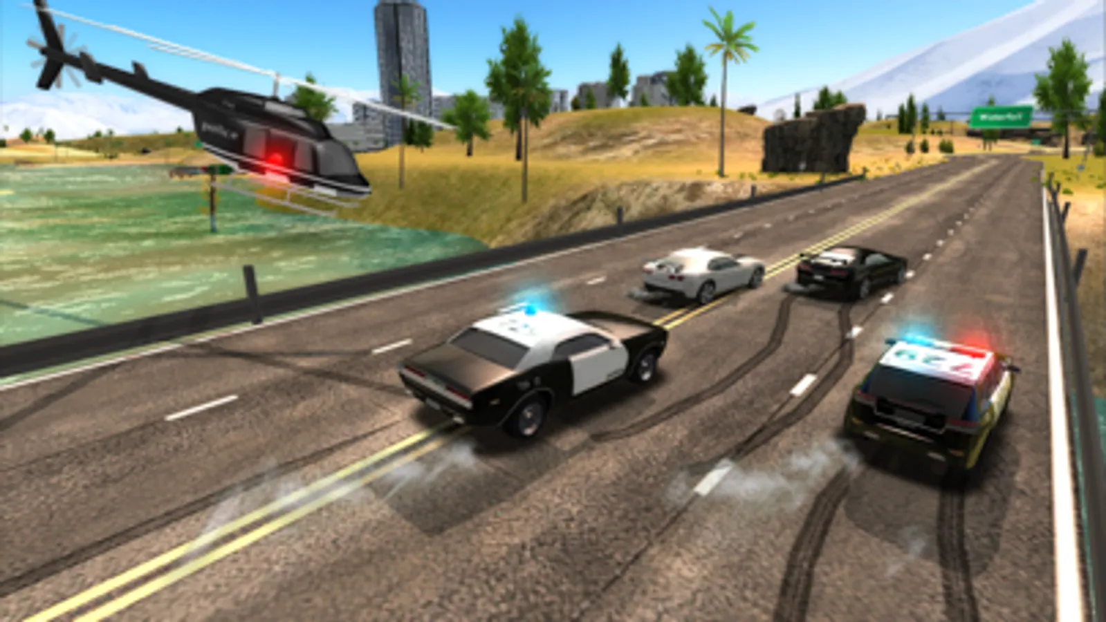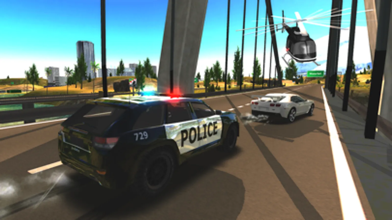 Drive over cascade and by dam, hidden away ancient temple, a small airport, different houses and farms, ruins, a camping place, and more in one of the best police car driving simulator game!