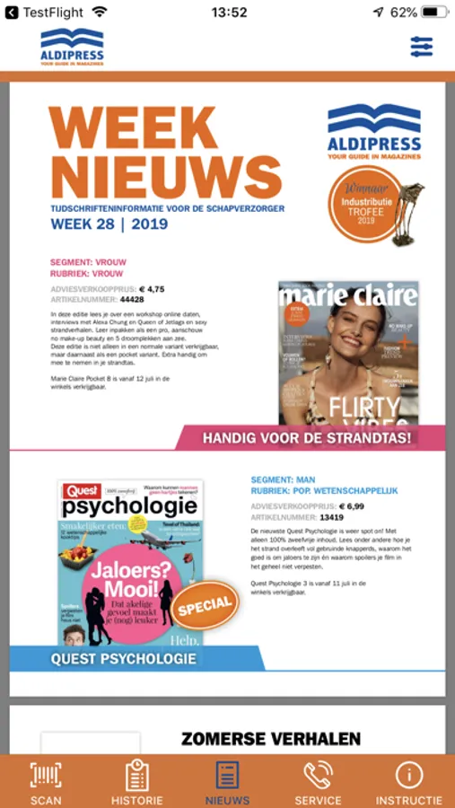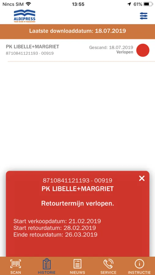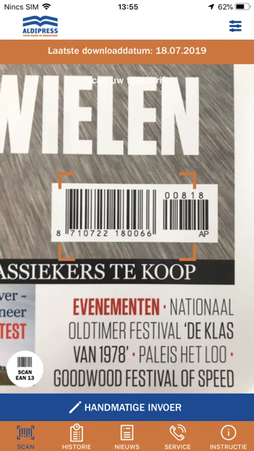 Met de Aldipress Tijdschriften App kunt u gemakkelijk de retourdatum van een tijdschrift achterhalen d.m.v. het scannen van de barcode.