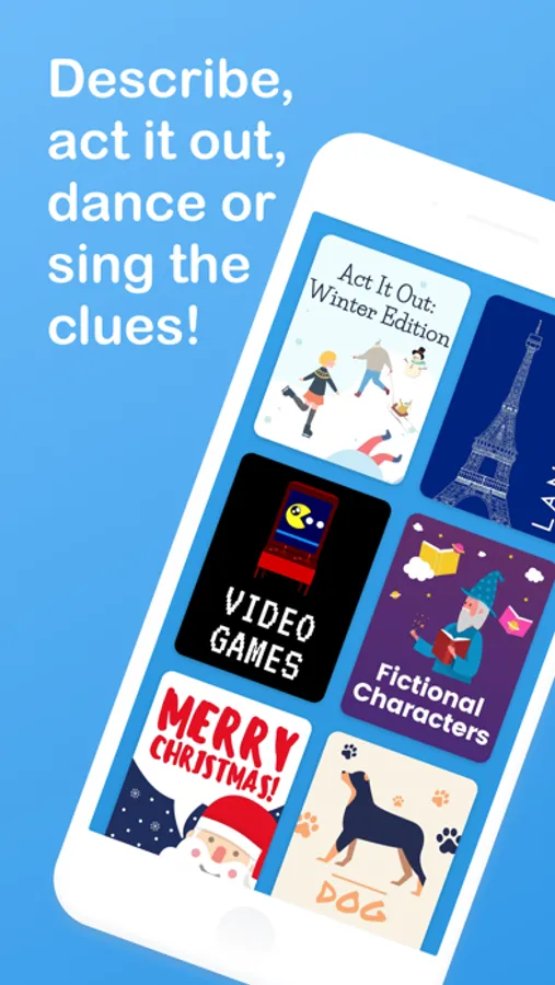 Guess the word on the phone from your friends clues. Act it out, describe, sing, dance to give a clue.