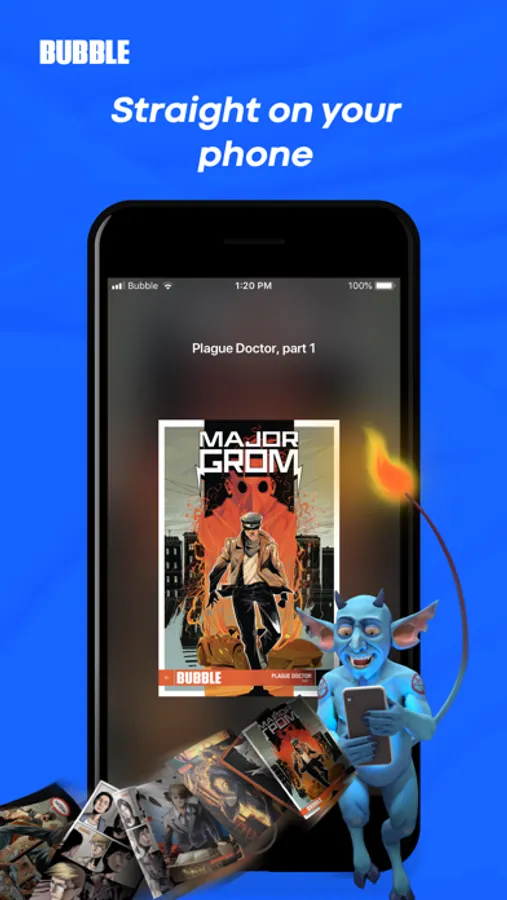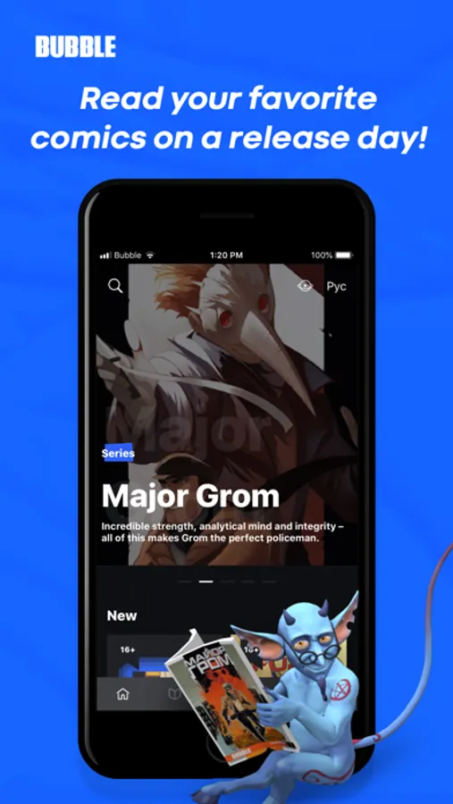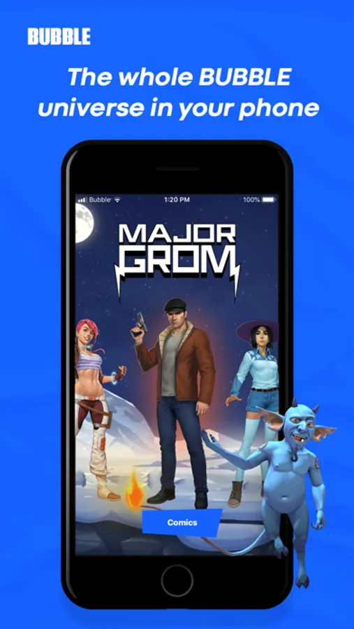 Using the app you can get acquainted with our universe of heroes, download and read all the newest BUBBLE comics in high resolution and a convenient format.