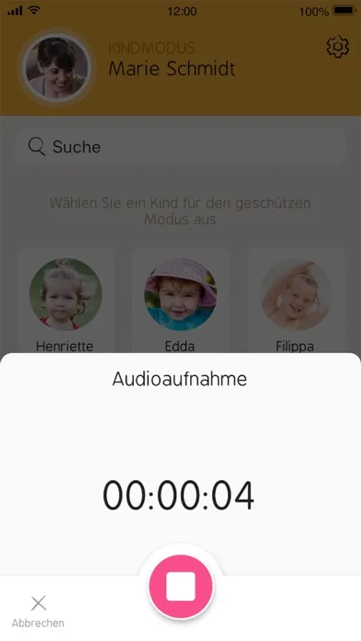 Über den Kindmodus können Sie das Kind jederzeit in seine Entwicklungsdokumentation einbeziehen. Lassen Sie das Kind seine eigenen Aufnahmen durchblättern, betrachten oder selbst neue Aufnahmen machen. Alle anderen Funktionen sind über ein Passwort weiterhin nur Ihnen zugänglich.