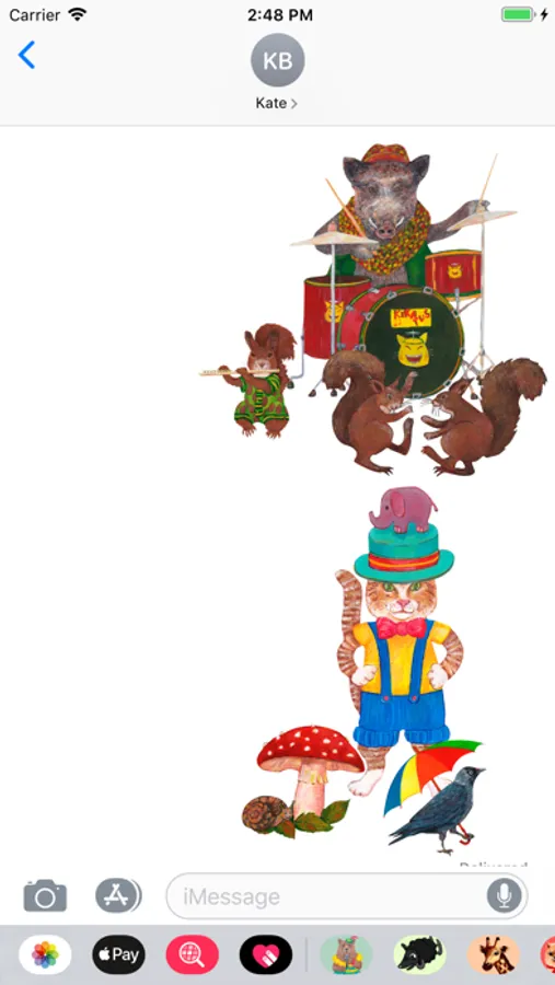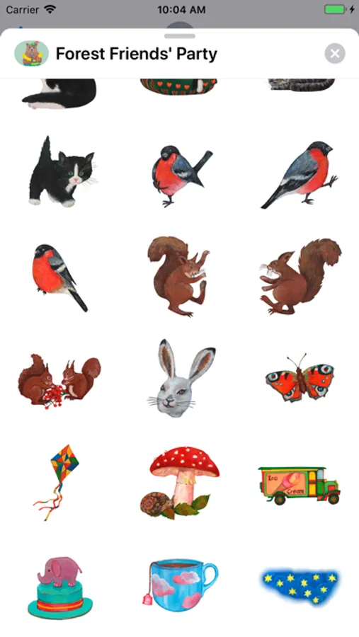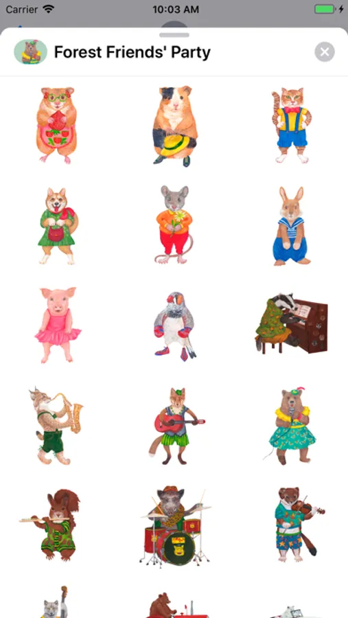 Animals are having a fun party in the forest—and you can join in, too! These iMessage stickers add cheerful vibes into your discussions. The pack includes 42 stickers, including: