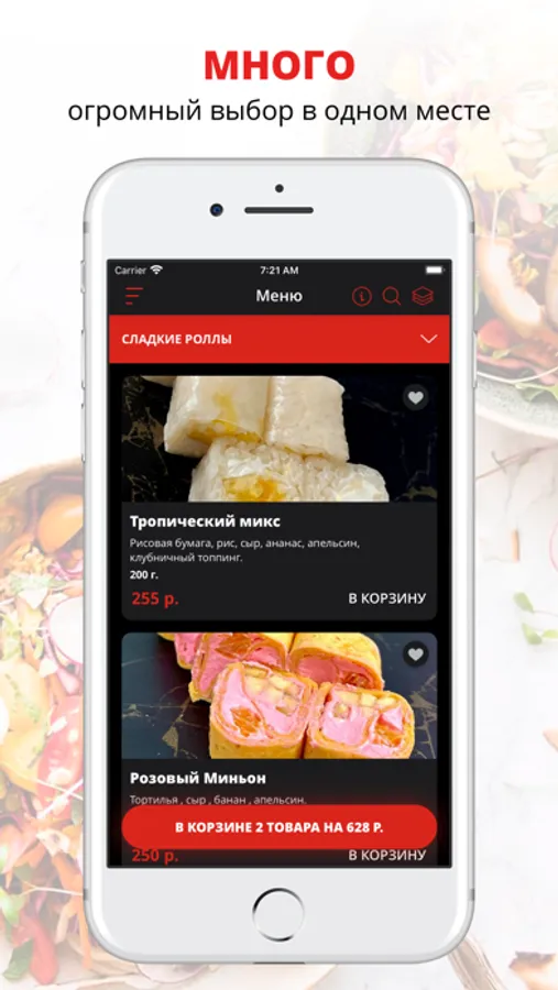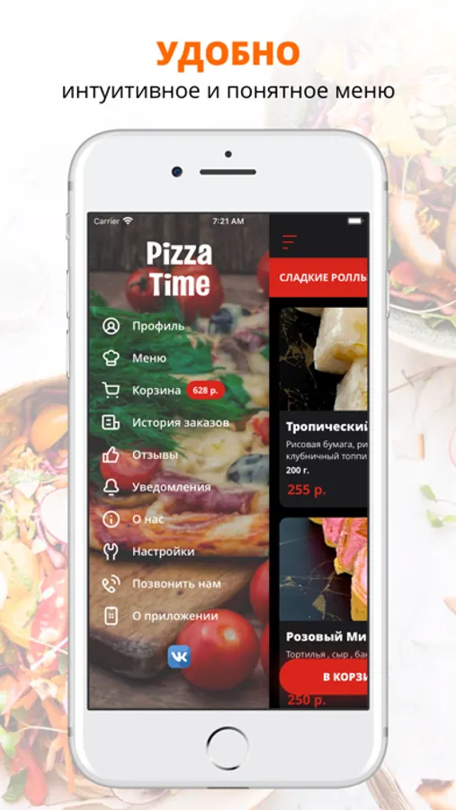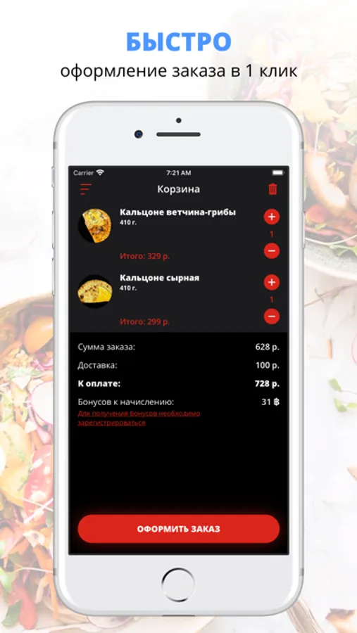 удобная корзина и быстрое оформление заказа,