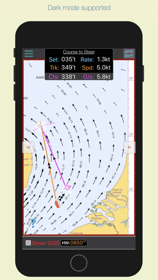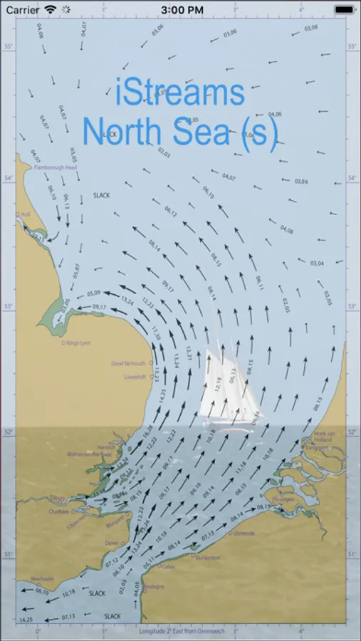 iStreams displays the valid hourly North Sea (s) tidal stream atlas for the current real time, in reference to the time of high water at Dover... a smart app, fully functional offline. With tools to measure tide set and interpolated rate.