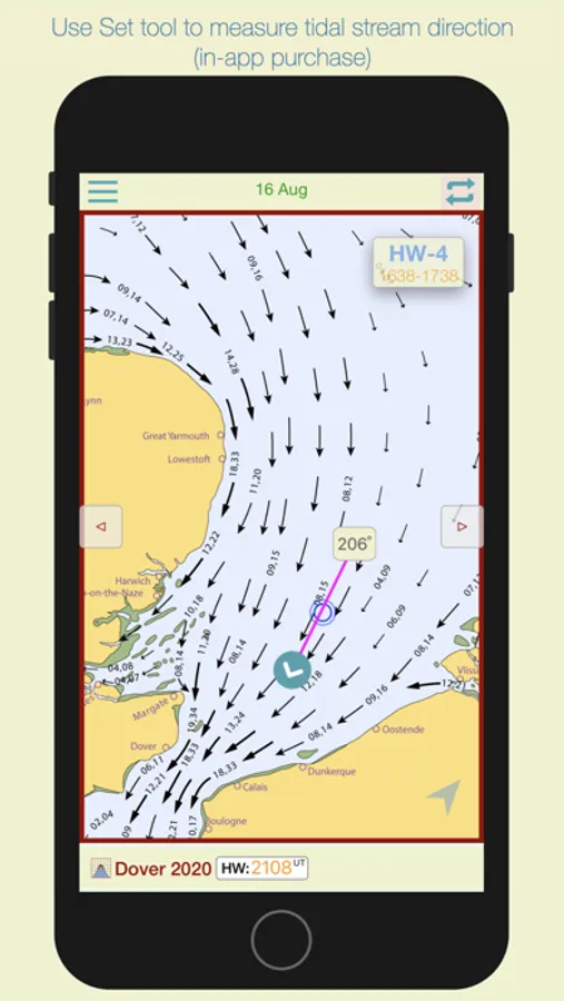 Select the 'Set' tool to measure the precise true course of any tidal stream arrow. (in-app purchase)