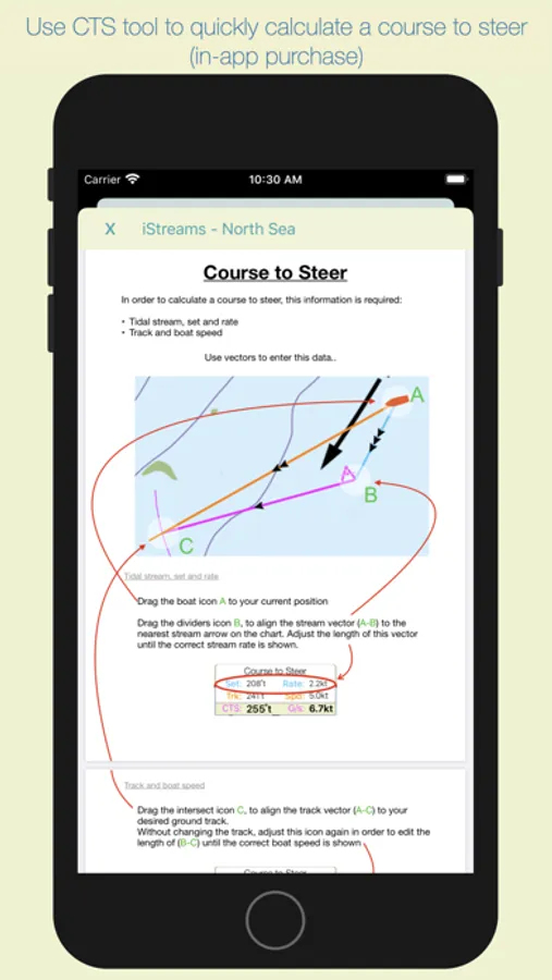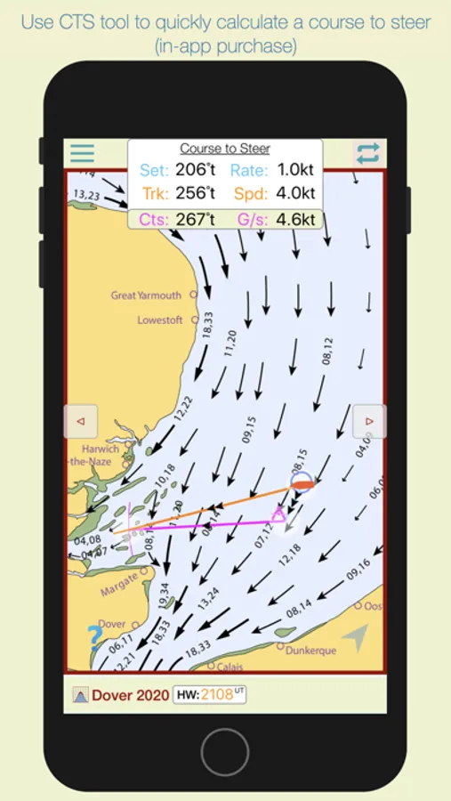 Select the 'CTS' tool to calculate a Course to Steer. (in-app purchase)