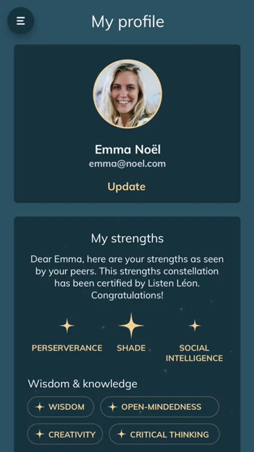 Then, drawing from these compliments, our AI skillfully analyzes the message's content to craft your optimal self-portrait, shaped by the insights of your peers and grounded in real, tangible experiences.