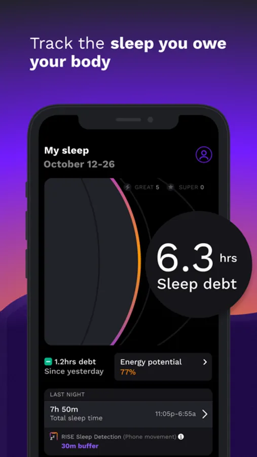 Join over 10 million users! Become a better sleeper and morning person thanks to 100 years of sleep science with RISE, the only sleep tracker that also measures your sleep debt and energy levels.