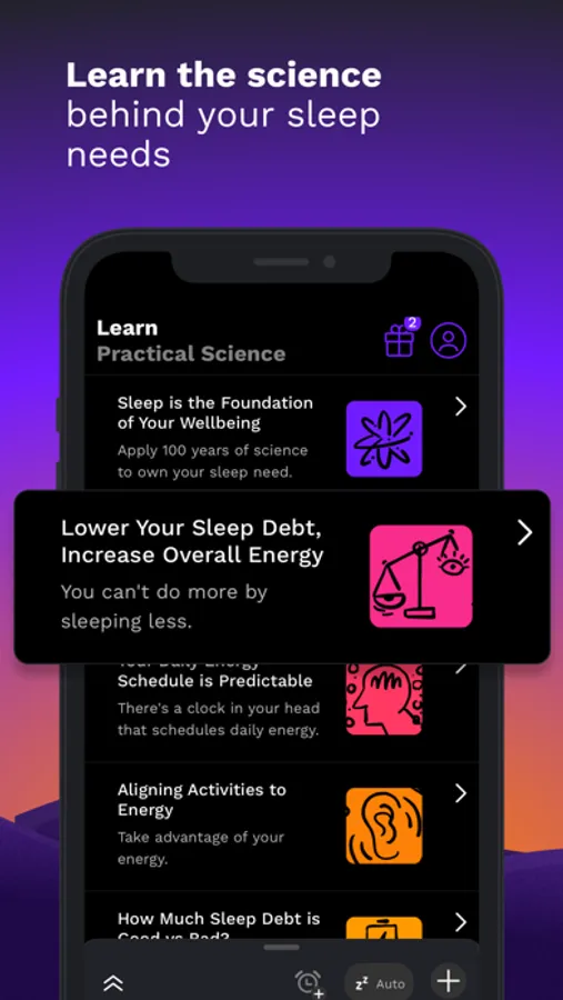 Based on your sleep data, circadian rhythm and research, we’ll make recommendations that fit your needs and guide you toward healthier habits.