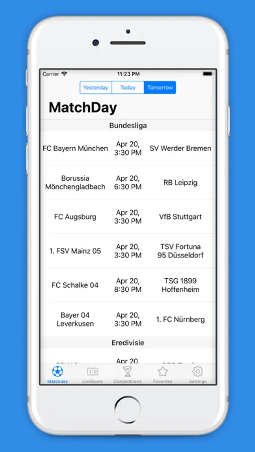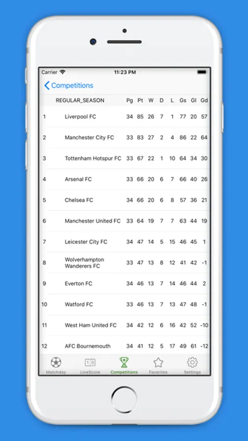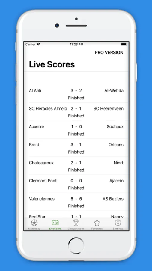 The application warns you before any other application of the goals, results and other events of a match such as lineups, expulsions and reminders 1 hour before with the TV channel.