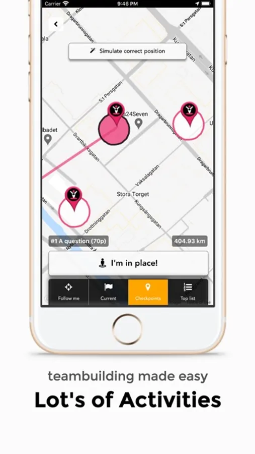 One activity you can add to the event is a “Track Rally”. Using your mobile you navigate to a Checkpoint which is a geographical area visible in your phone and complete it in different ways (It could be questions or missions). Then you head to the next one! Watch the top list to see your ranking and make sure your team wins!