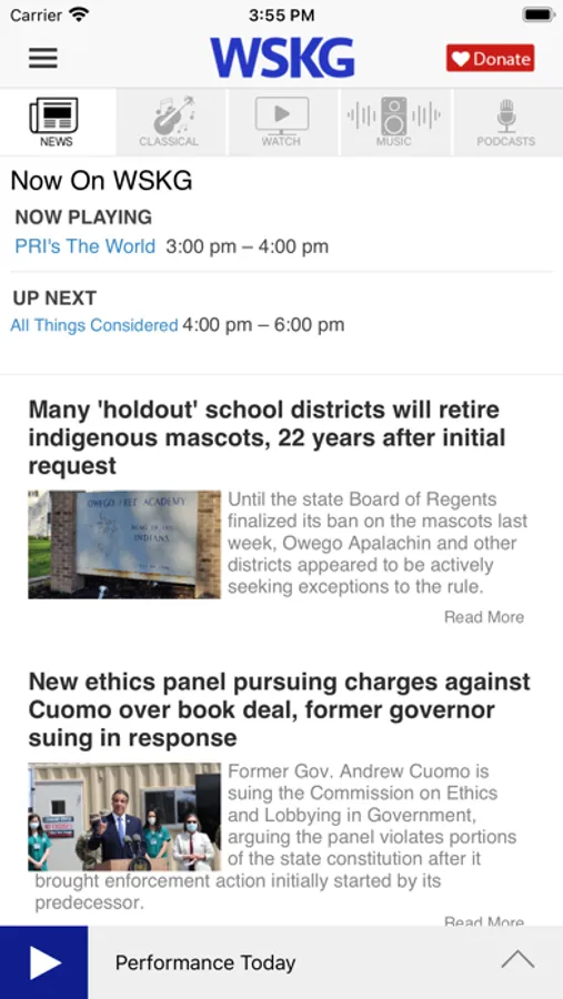 • WSKG Radio (NPR News, BBC, etc) "Trusted News, Thoughtful Conversations