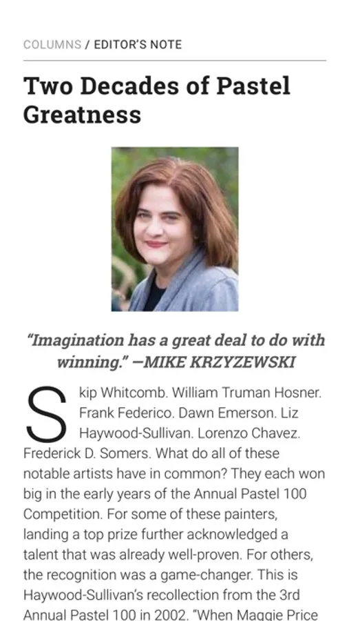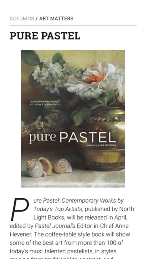 Pastel Journal Magazine covers topics of interest to working pastelists as well as those who work in pastel as an additional medium along with those who are just experimenting with the medium.
