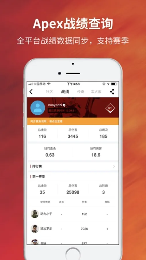 4,《Apex英雄》战绩查询,离线查询个人战绩、各英雄数据以及历史对战数据。