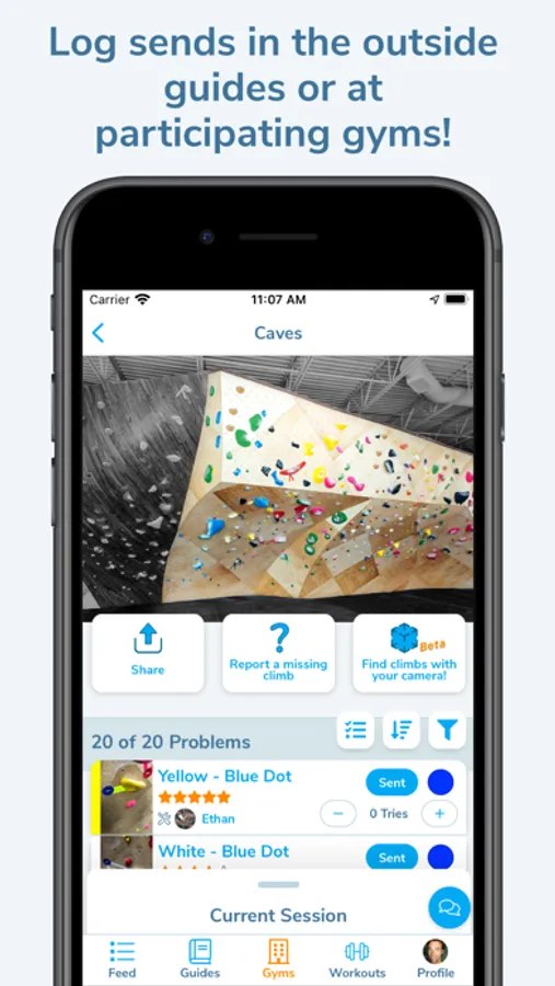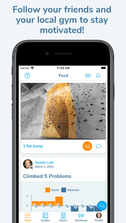 • Follow your friends in the FEED to see their sends and media or your gym to see when a new area has been reset or if any events are happening soon.