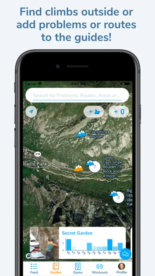 • Find climbs for your next trip in the OUTDOOR GUIDEBOOK or give back by adding climbs that you've sent to the guidebook through the app in a wiki-style.