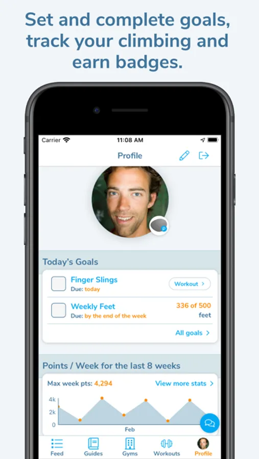 • Track your nightly sessions at the local CLIMBING GYM if they've joined Pebble or even if they haven't.