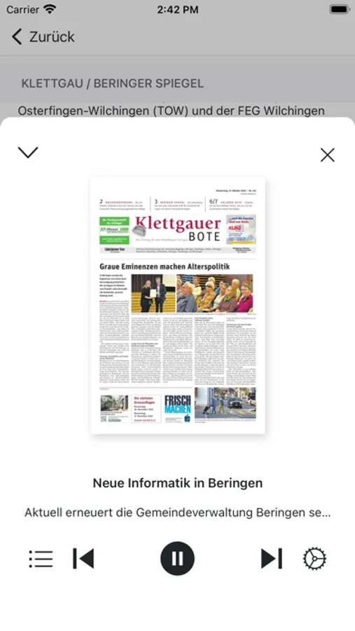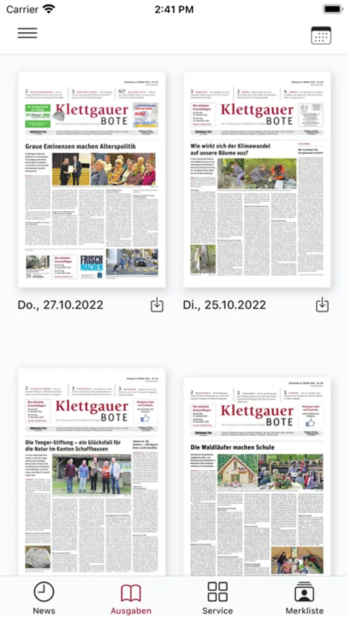 Die e-Paper-Ausgabe des «Klettgauer Boten» bietet besonderen Lesekomfort. Wählen Sie selbst, ob Sie wie von der gedruckten Zeitung her gewohnt durch die Seiten blättern möchten oder ob Sie die Navigation über die Artikelübersichten bevorzugen. Sie können sich auch jederzeit Artikel im angenehmen Lesemodus anzeigen lassen. Ein Fingertipp auf den entsprechenden Text genügt. Die App bietet zudem folgende technische Vorteile: