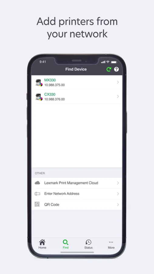 • Scan documents from your Wi-fi connected Lexmark printer to your app