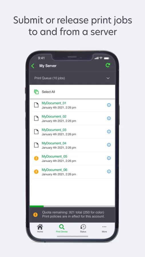 • Submit or release print jobs to and from a server
