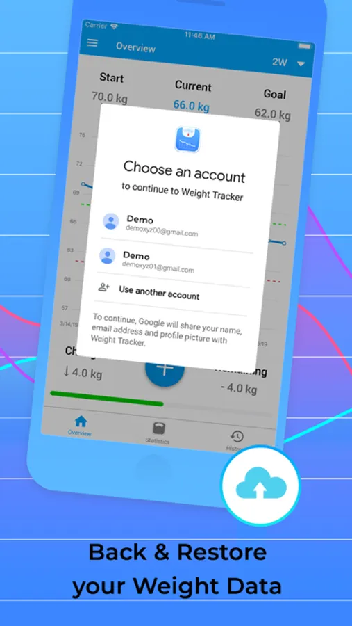 You can also take a back up of Body Statistics. So, if you change your device then also you can keep a track on your weigh goal!
