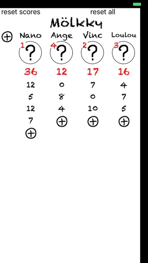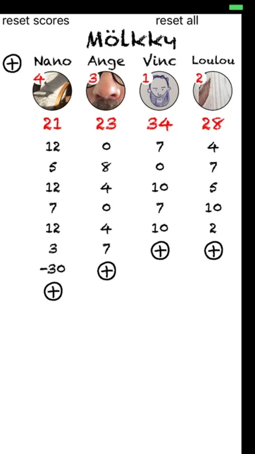 Le total et le classement des joueurs (par score décroissant) sont automatiques.