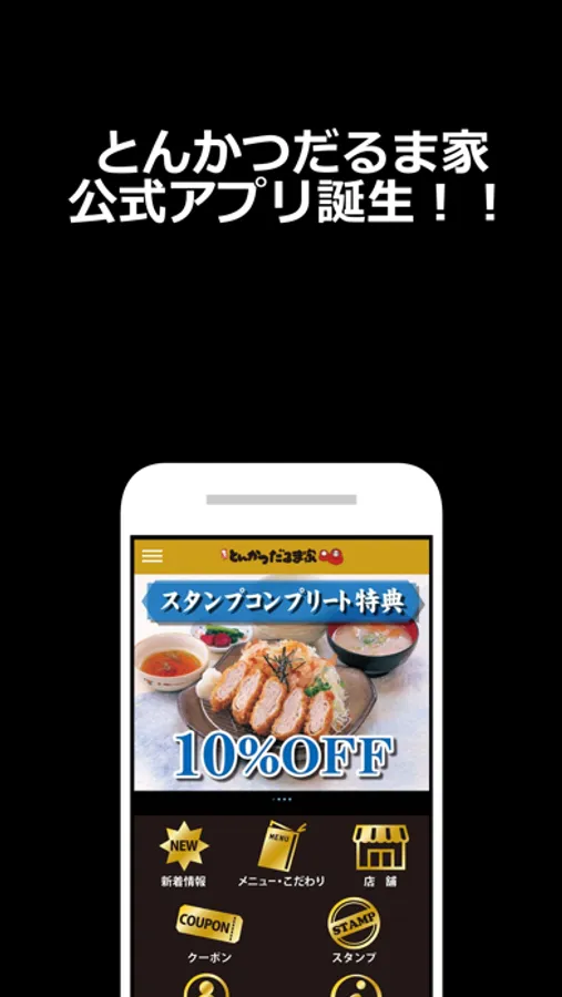 旨いとんかつだるま家公式アプリのメインコンテンツ