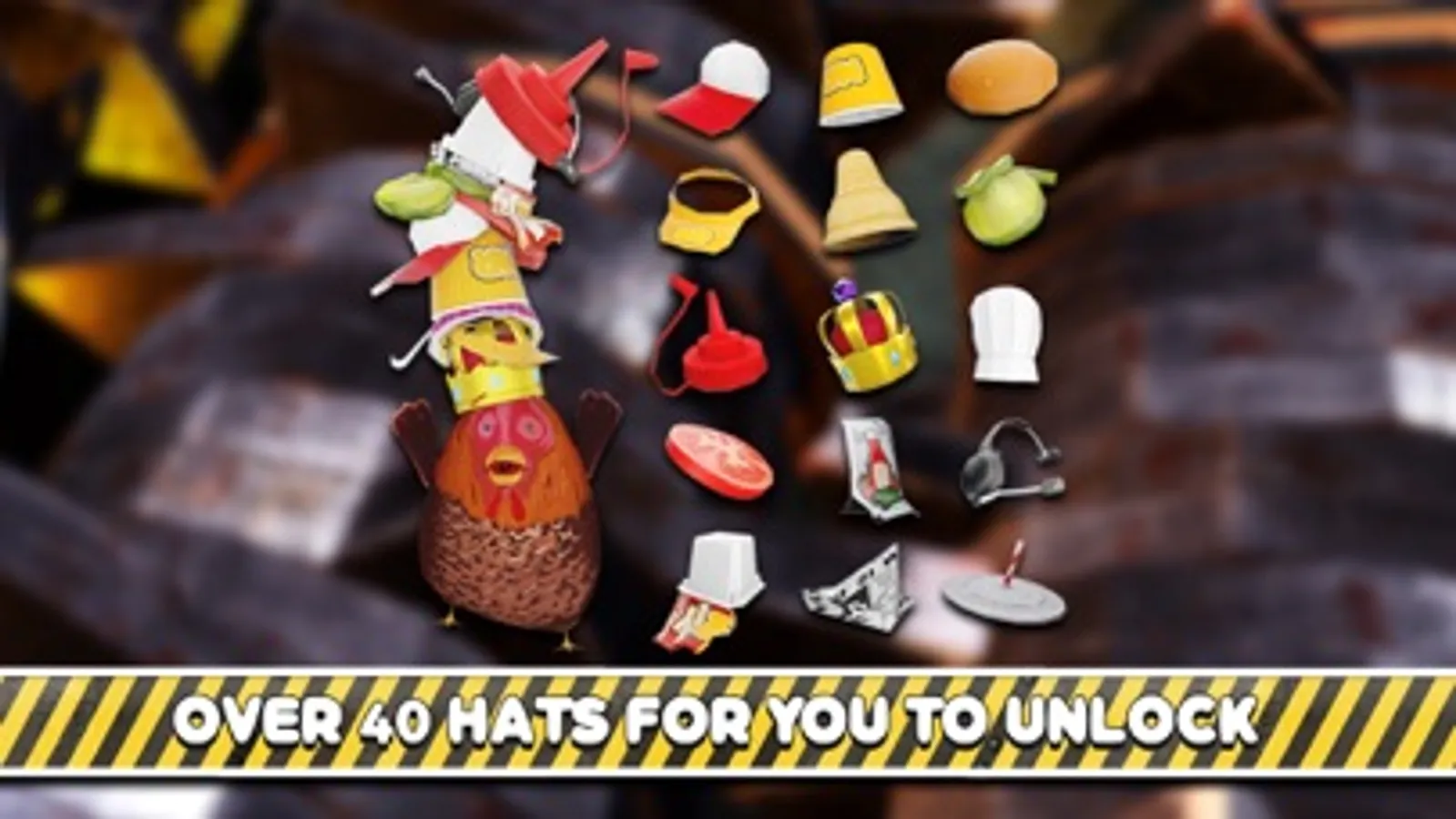 Nugget Royale has over 40 unlockable hats. Hats are unlocked by winning rounds in certain stages or by your amount of chicken nuggets.