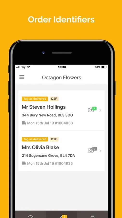 Direct2Florist Florist Manager. An essential order management App for Direct2Florist members. Get Push Notifications for New Orders. Easily Accept and Reject Orders. Tag As Delivered and Initiate Payments at the touch of a button. Fulfil orders confidently with information at your fingertips and provide 5-star customer service by adding delivery photos for the sending customer.