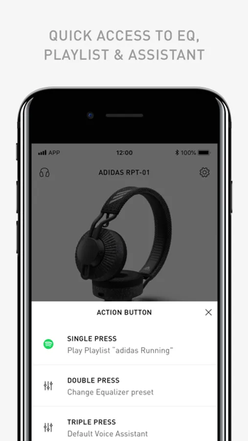 This app is designed for and works exclusively with adidas ZNE 01, RPD 02 SOL, Z.N.E. 01 ANC, FWD 02 Sport, RPT-01, FWD-01 and RPD-01. A Spotify premium account is required for the Spotify action button feature. The Google Assistant requires the Google Assistant app and may not be available in certain languages and countries.