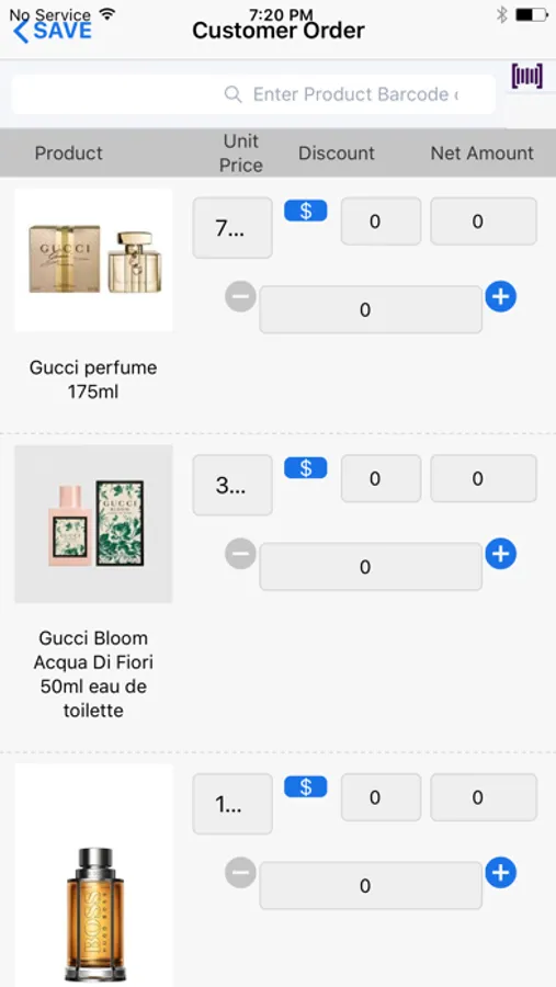 Promoter can search product using barcode or free text. Sales input can be using +/- button for keypad.
