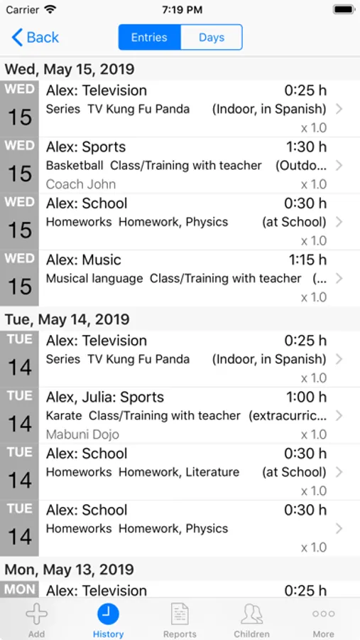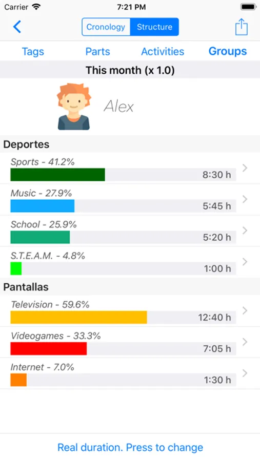 This application allows us to register these red (screens) activities, and find the balance with other green (no-screens) activities that usually are less interesting for our children: sports, studying, music!