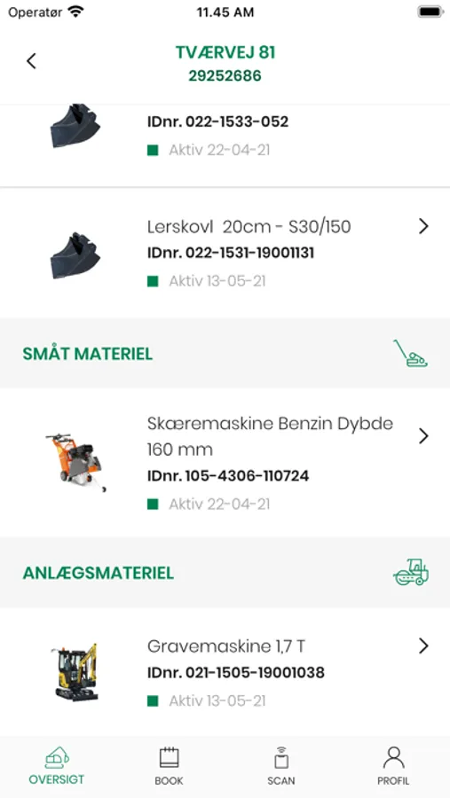 I GSV APP'en gør vi det nemmere for dig at have overblik over det materiel du har lejet, samt at styre afmelding og booking af materiel. APP'en viser dig hvor dit materiel er, hvornår det sidst har været aktivt og informationer om det lejede materiel. Du kan således finde løftediagrammer, gravedybder og andre relevante informationer, så du er sikker på at bruge det rette materiel til din opgave