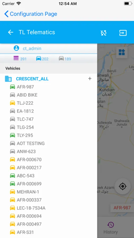 Dashboard: Displays the total vehicle count with color-coded statuses.