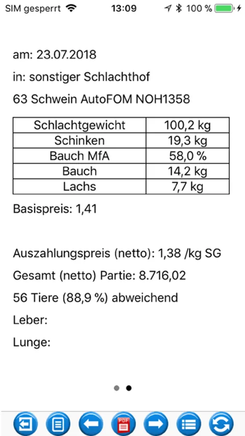 Die App beinhaltet die Anzeige von Kurzinformationen über Schlachtpartien sowie die Bereitstellung