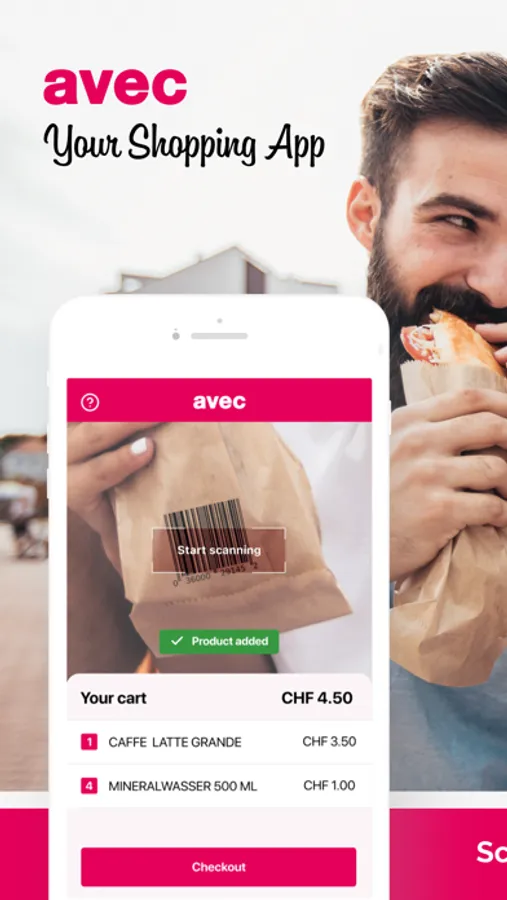 Shop around the clock, quickly and flexibly with the avec 24/7: Scan & Pay app. In selected avec stores, you scan the QR code at the entrance to open the door and capture the barcodes of your selected products directly with your mobile phone. Payment is also made directly via the app, saving you extra time when shopping.