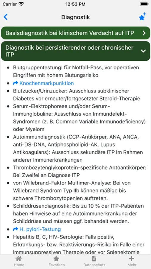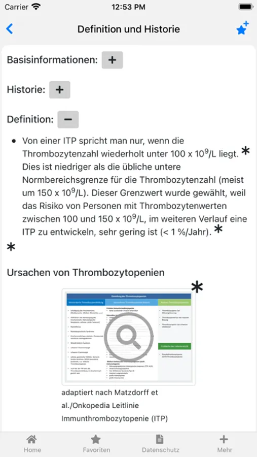 Die App enthält zusätzlich einen Newsfeed mit Links zu neuen Daten und aktuellen Themen rund um die Immunthrombozytopenie.