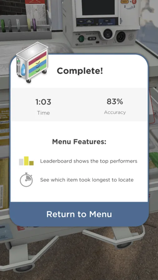 • Scenarios - leveraging medical simulation curriculum developed by Jump Simulation, users demonstrate clinical knowledge and cart familiarity to ensure a successful patient outcome