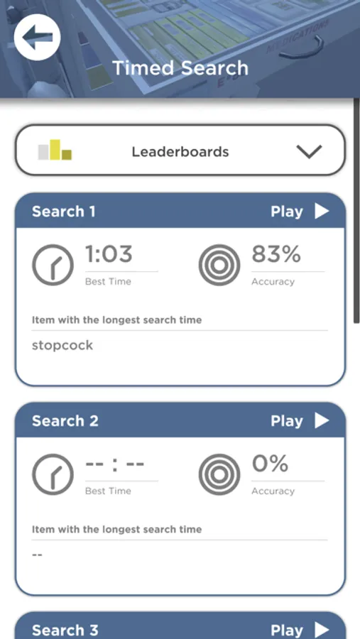 • Timed Search - a "scavenger hunt" type mode designed to increase user familiarity and speed to find objects