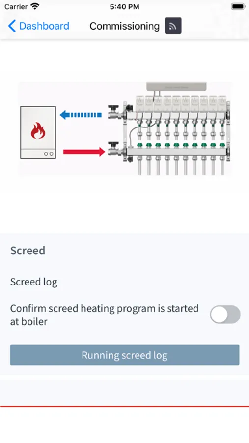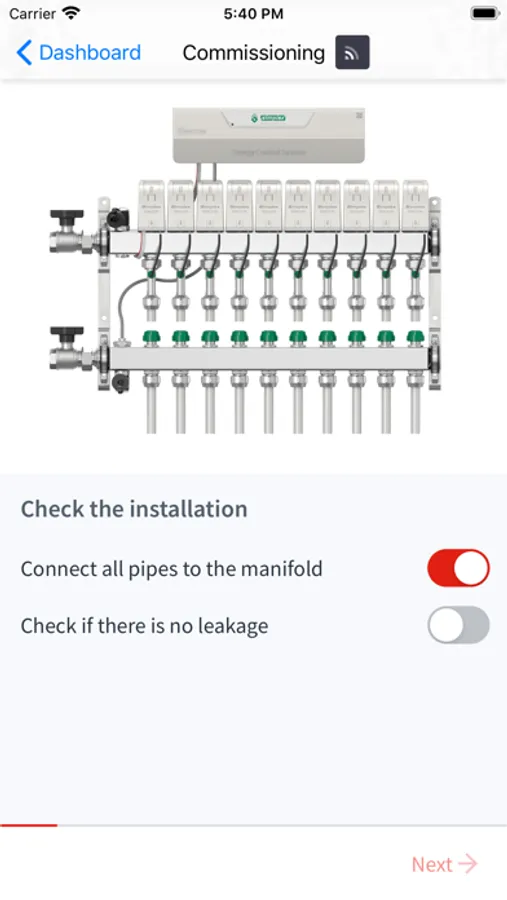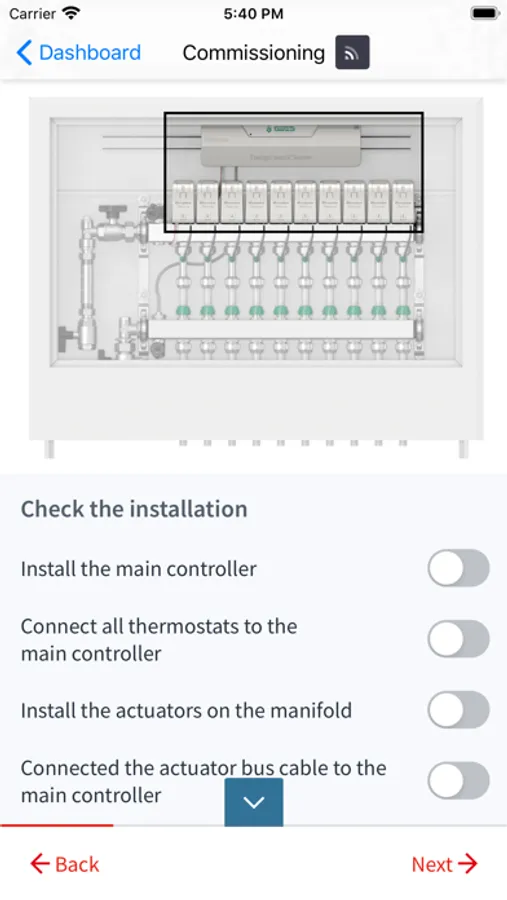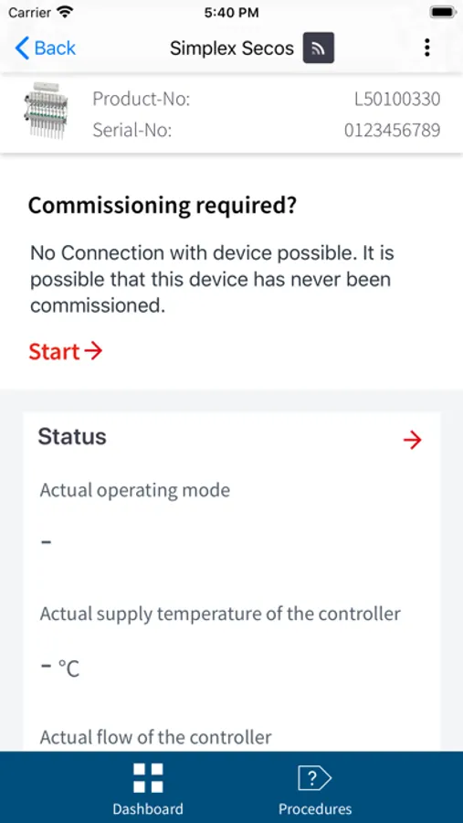 Just scan the product QR code and the app will connect to your Flamco device. Now you are ready to install the product with helpfull guidelines displayed in the app step by step. A wizard will guide you through the commissioning steps.