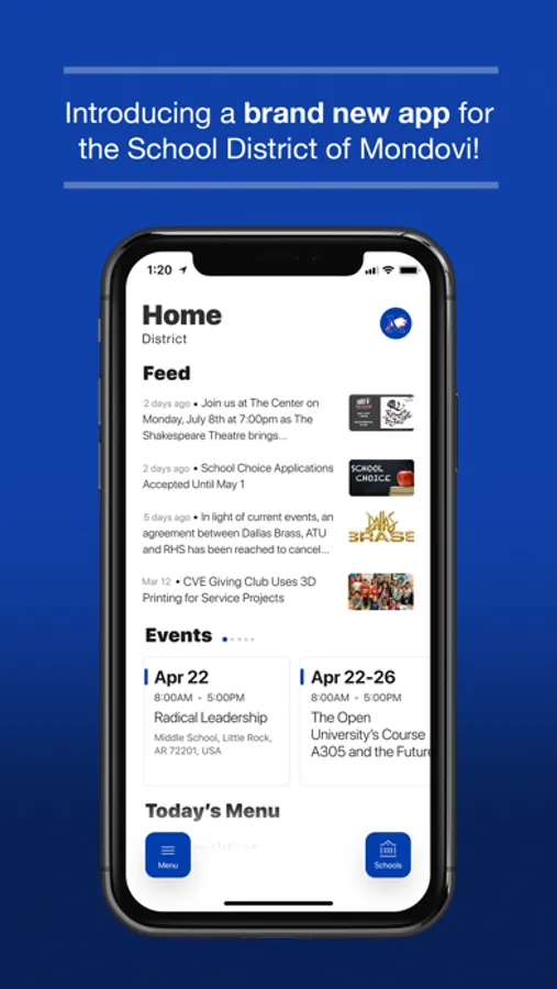 The official app for Mondovi Schools allows users direct access to the most recent news, announcements and event calendars. Customize the app to display information relevant to a specific campus and to receive important notifications from the district. Users may also access the directory of district faculty and staff, view dining menus, find the location of district events, contact campuses and departments, follow athletic scores and updates, and much more.