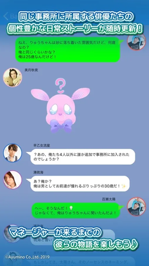 次元超越男子では、なかなか仕事が来ない4人の俳優たちが、あなたというマネージャーを仲間に迎え入れることで自分達の道を切り開いていきます。