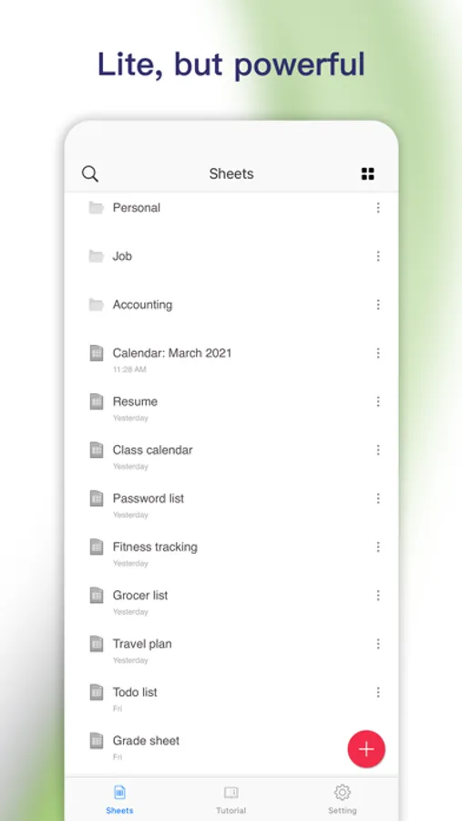 This is a spreadsheet app can let you create sheets and edit sheets.