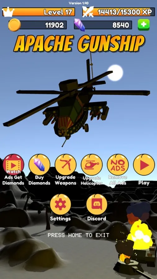 Fight through enemies in 5 different stages, rescue soldiers, upgrade your Apache helicopter and its weapons. Blow up tanks, planes and artillery in this top down helicopter shooter.