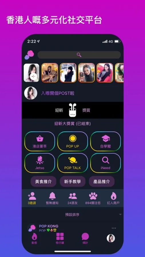 POP KONG為香港本土團隊製作的本土APP ,沒有任何資金及背景,創辦理念是希望創造出一個為香港人帶來各種不同需要,齊上齊落的多元化百寶平台。