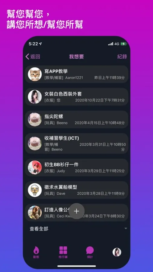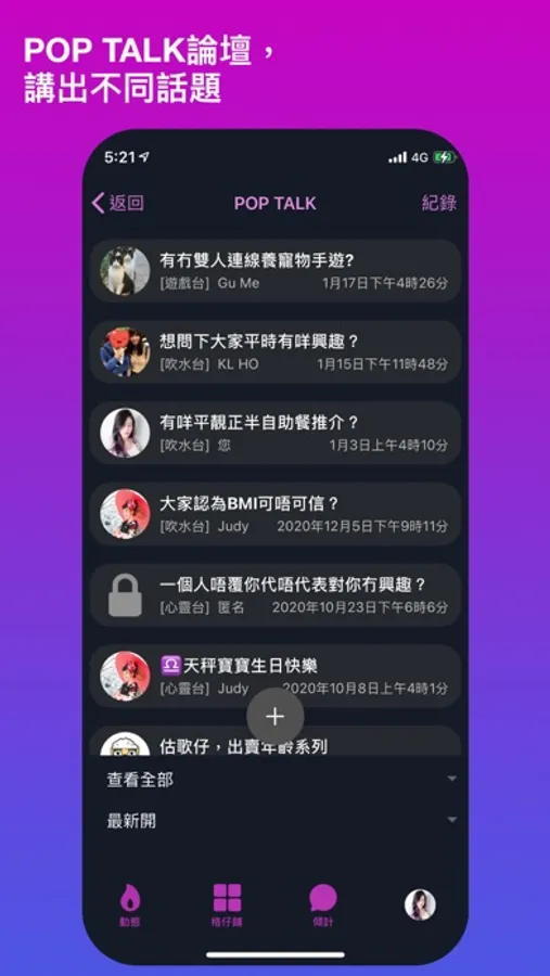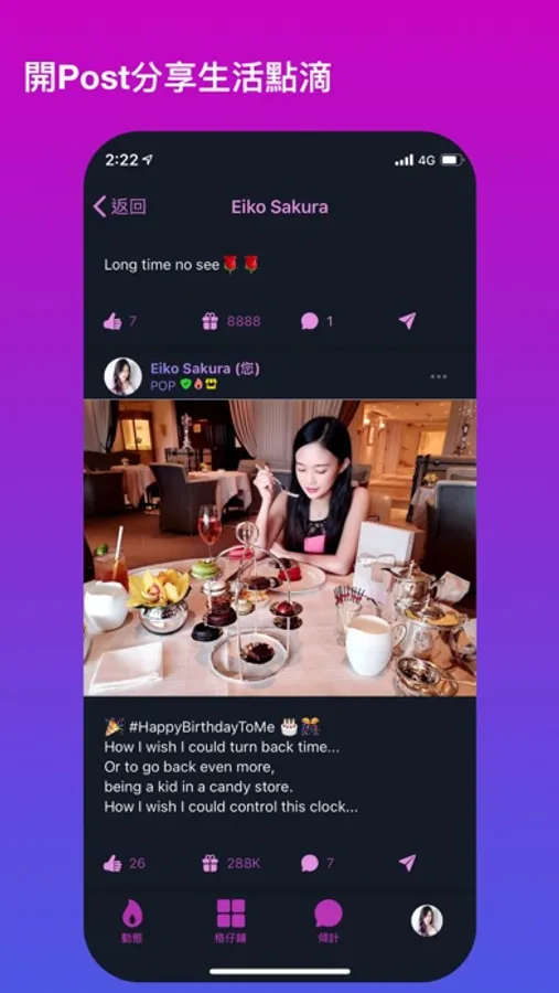 社交平台: 時刻(限時動態),發帖,加好友/關注,訊息聊天
