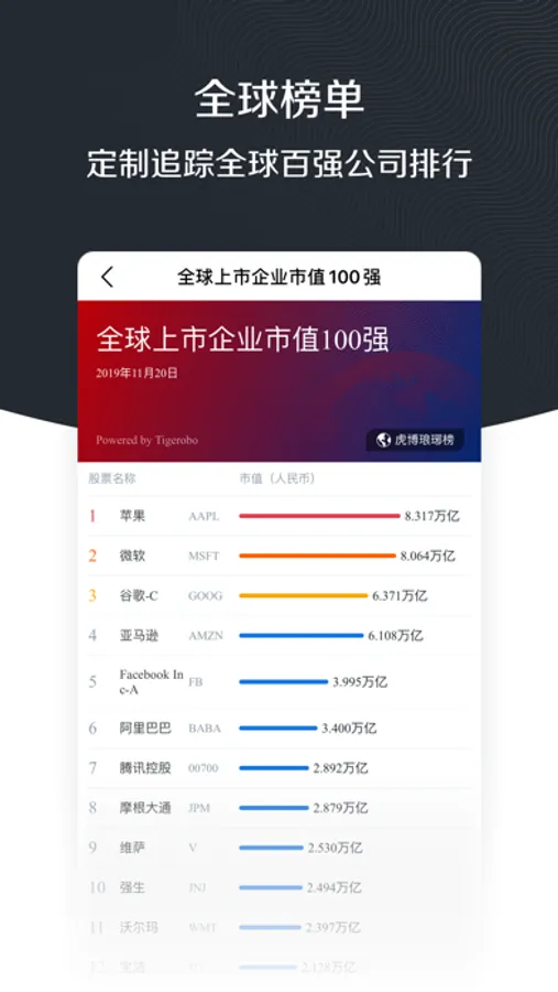 2)股市行情:覆盖沪深、香港、美国在内的全球主流股票交易市场,提供实时行情、资讯、数据。
