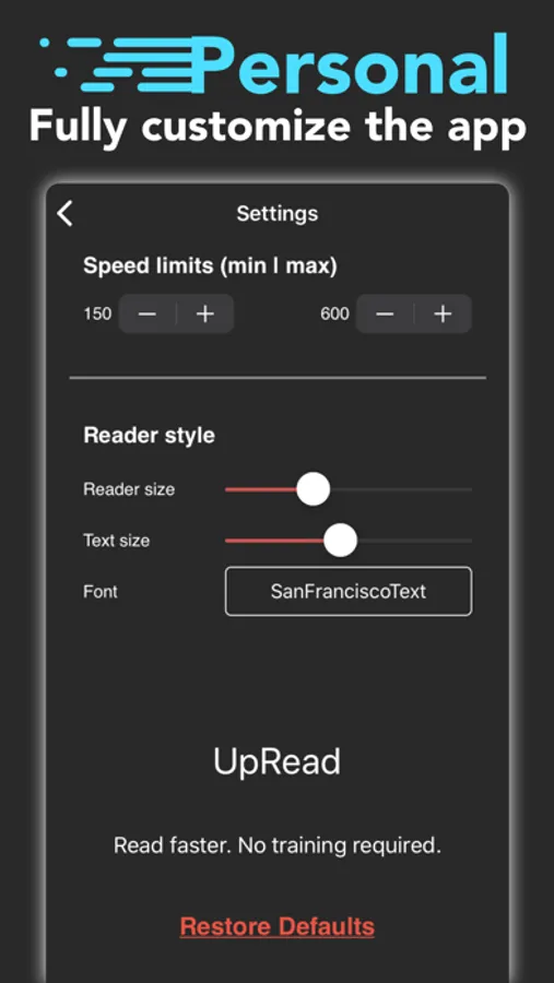 > I have used every flash reader I could Get my hands on. […] The back end works somehow where the others fail. [… ] You will surprise yourself by how fast you can go over time. Now friends who see me reading something look at how fast the words go and tell me that they just see flashing gobbledygook. I thought the same thing but the learning curve is painless! […] Thank you to the UpRead team!!! Finally! An app worthy of my bottom bar! — eightyanthony, USA, Aug 2019